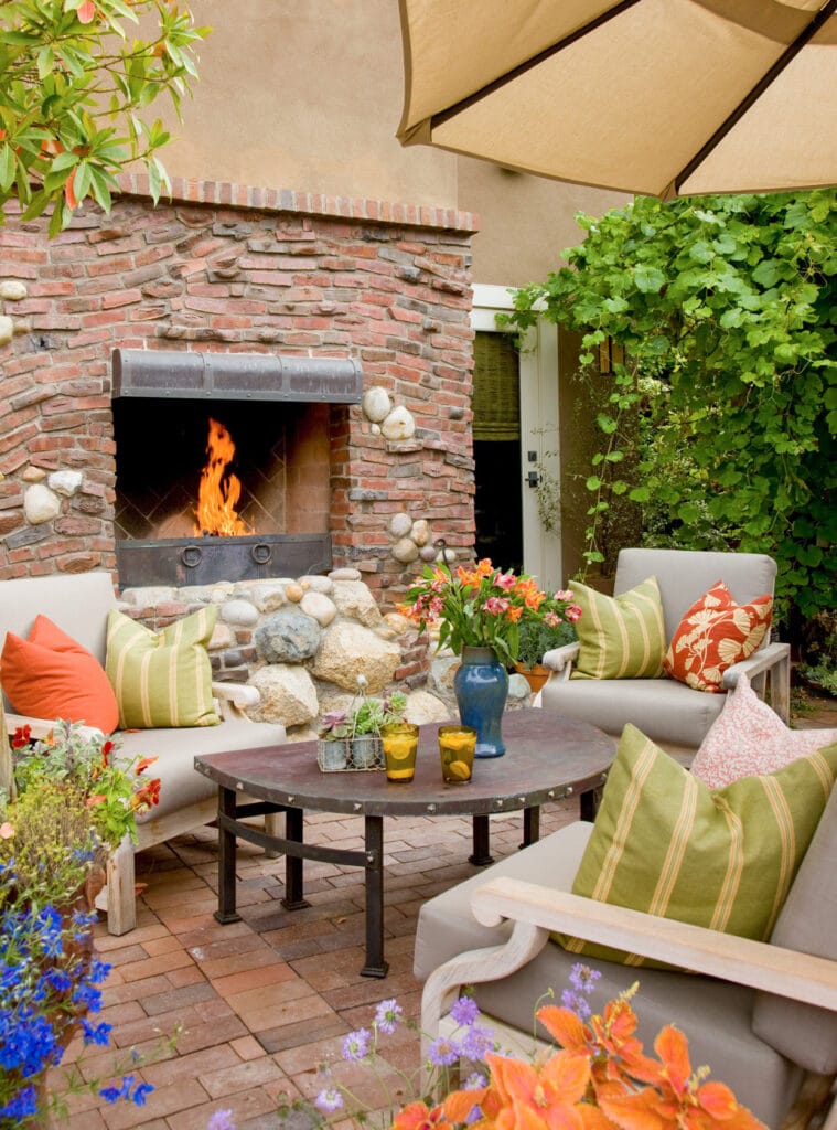 Bricks make one of the best materials when constructing a fireplace. But this time, instead of using bricks alone, combine them with round stones to create a mix-and-match effect. You can have the bricks predominant and just have the round stones sprinkled all over. You can also follow a wavy pattern when arranging the bricks to create a more dramatic look. Match this outdoor fireplace with modern pieces of furniture with cushions and throw pillows. It would serve as a good hang-out place late in the afternoon or even late at night while enjoying the warmth radiated by the fireplace.