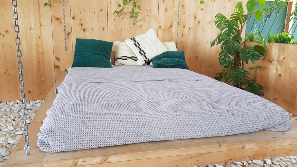 This low-hanging bed is super easy to make. You just need some wood slabs or salvaged beams and chains or ropes to hang the bed. Be sure, though, that the materials are strong enough, and so does the ceiling. The challenge comes with hanging the bed itself, but it’s all worth it. Look at how cool it is! It definitely is an attention grabber.